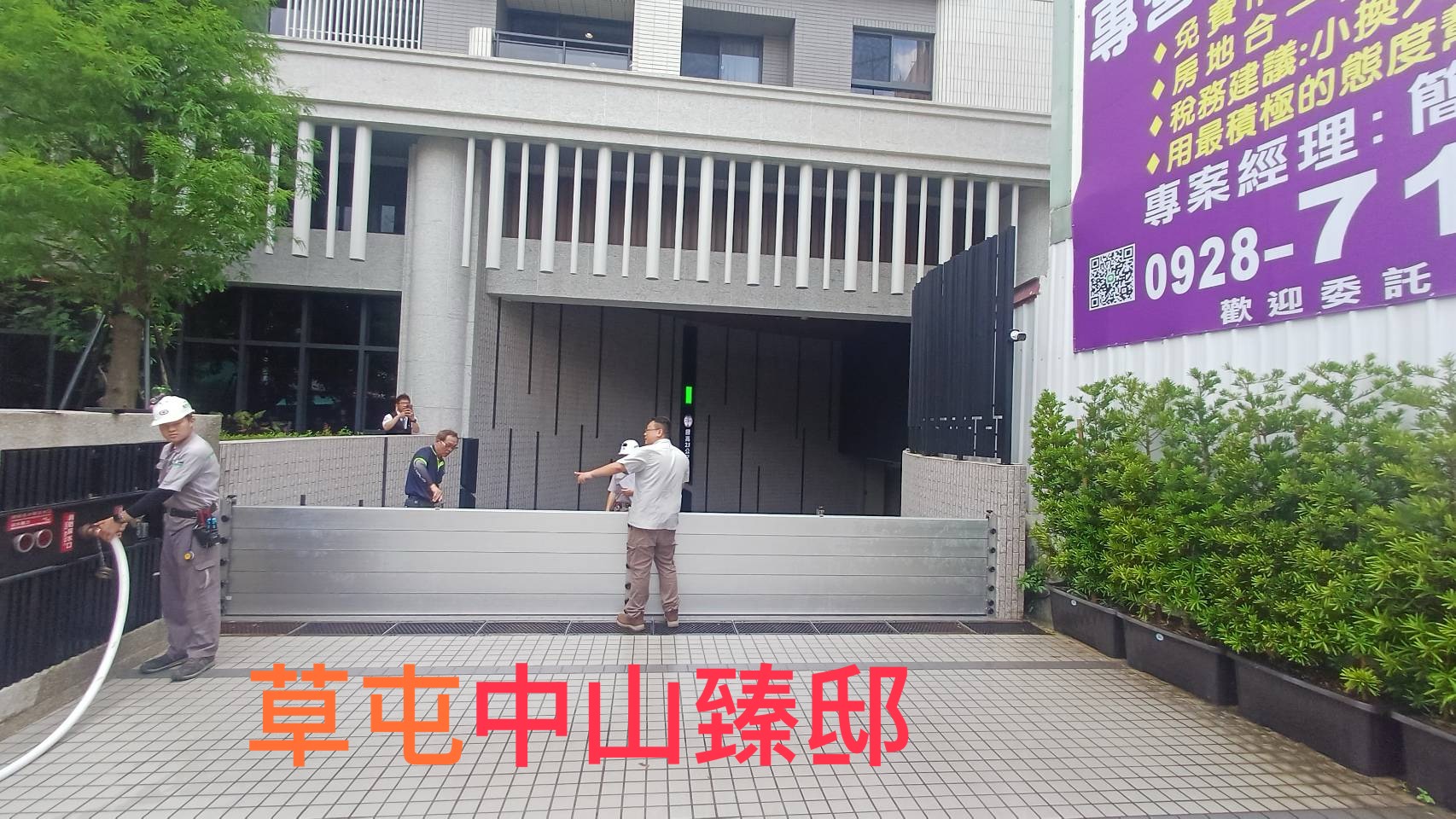 新竹埔頂一路-富宇雲悅大樓 丸角防水閘門試水成功, 百分之百零漏水