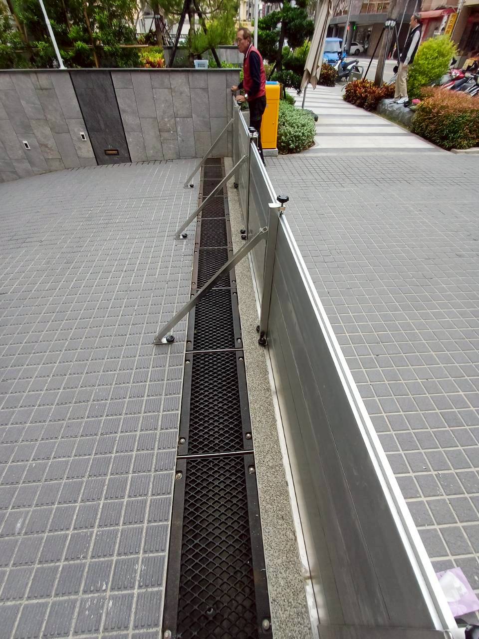 防水門安裝|車道分出入二段式,大雨特報來時,可先單邊組裝,另一邊,尚可出入