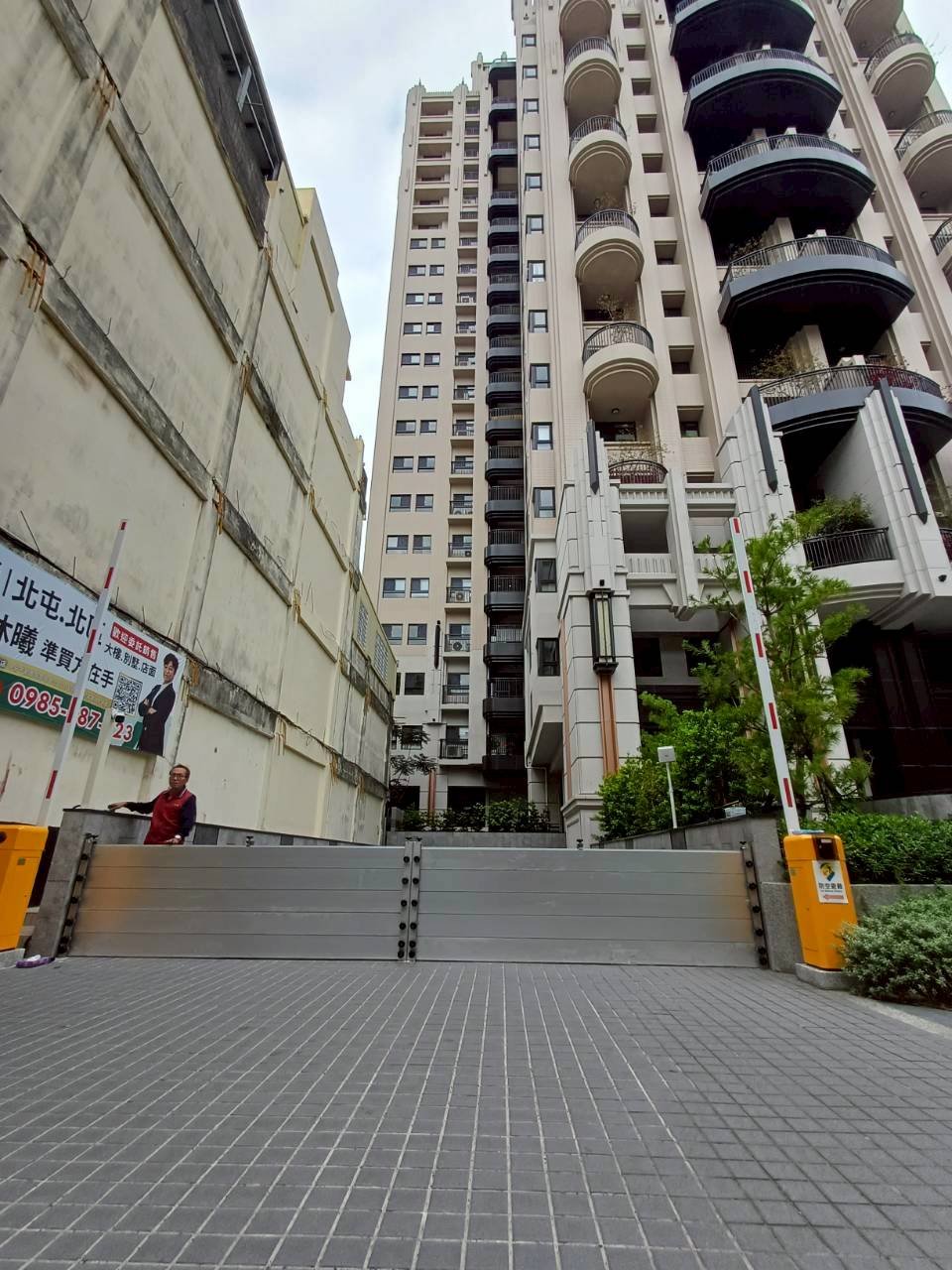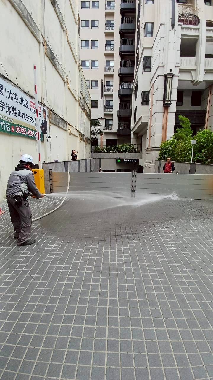 新竹埔頂一路-富宇雲悅大樓 丸角防水閘門試水成功, 百分之百零漏水